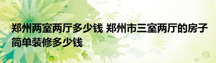 郑州两室两厅多少钱 郑州市三室两厅的房子简单装修多少钱
