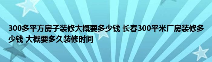 300多平方房子装修大概要多少钱 长春300平米厂房装修多少钱 大概要多久装修时间