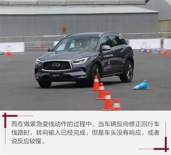 全新英菲尼迪QX50采用最新的豪华SUV平台打造,白车身的重量仅为419公斤,新型高抗拉强度钢材的运用也能有效抵抗弯曲和振动,提升车身整体刚性。在了解完车辆的基础架构后,我们首先进行的是场地测试,更好的了解全新QX50在动态中的表现。