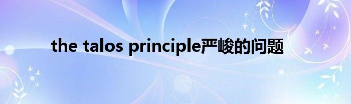 大家好,小珊来为大家解答以上的问题。the talos principle严峻的问题这个很多人还不知道,现在让我们一起来看看吧!