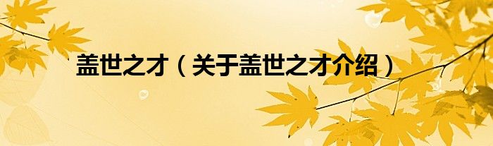 关于盖世之才到此分享完毕,希望能帮助到您。