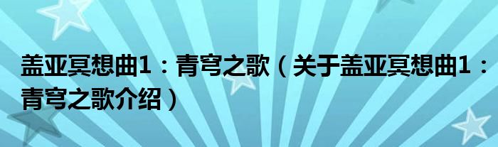 盖亚冥想曲1:青穹之歌(关于盖亚冥想曲1:青穹之歌介绍)