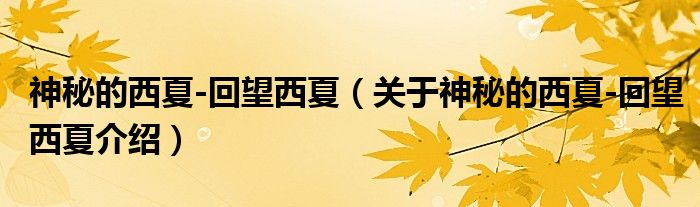 神秘的西夏-回望西夏(关于神秘的西夏-回望西夏介绍)